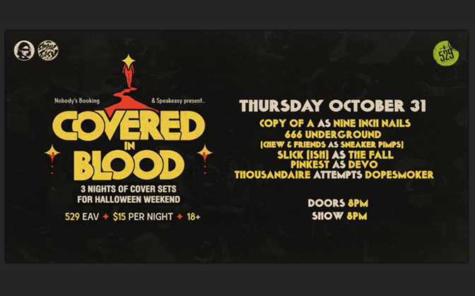 Covered in Blood - 3 Nights of Cover Sets for Halloween WeekendNight 1: Thursday October 31 @ 529