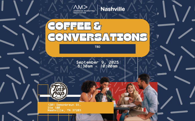 Join us for an exclusive AMA Nashville Members Only event on Tuesday, September 9, 2024, at 8:30 am at Tin Cup Coffee Nashville. The topic will be determined and shared once confirmed.