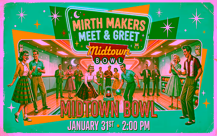 Join the Mirth Makers community for a relaxed, retro bowling hang at Midtown Bowl. This is an in-person meetup designed to bring our community together in a fun, low-pressure setting. No performances, no programming, just good people and good vibes.
