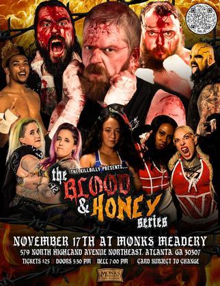 "Glass, blood, and barbed wire. Hot damn! It's time for Atlanta to fully dive into the ultraviolent side of pro wrestling. The Killbilly presents The Blood & Honey series. Come see the insanity of southern deathmatch LIVE!