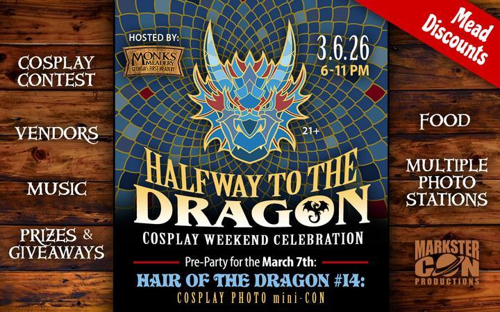 Calling all cosplayers and con enthusiasts near Atlanta! It’s time to kick off the 6-month countdown with HALFWAY TO THE DRAGON (21+), a celebration of cosplay, creativity, and community. HALFWAY TO THE DRAGON also serves as a PRE-PARTY for the following night's HAIR OF THE DRAGON #14: Cosplay Photo Mini-Con at Studio Space Atlanta on March 7th. We also invite you to join us back at Monks Meadery on Sunday afternoon, March 8th for the DRINKERS & DRAGONS Fantasy Bar Crawl, a great way to end Atlanta's "Cosplay Weekend" celebratory events!