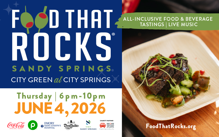 Food That Rocks is in partnership with Visit Sandy Springs, Community Assistance Center, and Second Helpings Atlanta, celebrating community, culinary excellence, and giving back.