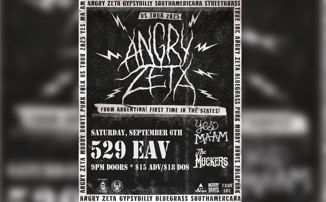Angry Zeta brings their high-voltage gypsybilly streetgrass from Argentina to the U.S. for the first time! Catch them live at 529 EAV on Saturday, September 6th, joined by southern stompers Yes Ma’am and local rowdies The Muckers. Expect gritty roots-punk energy and a wild night you won't forget.