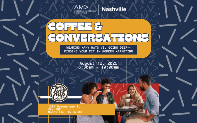 Join us for an exclusive AMA Nashville Members Only event on Tuesday, August 12, 2024, at 8:30 am at Tin Cup Coffee Nashville. The topic will be: