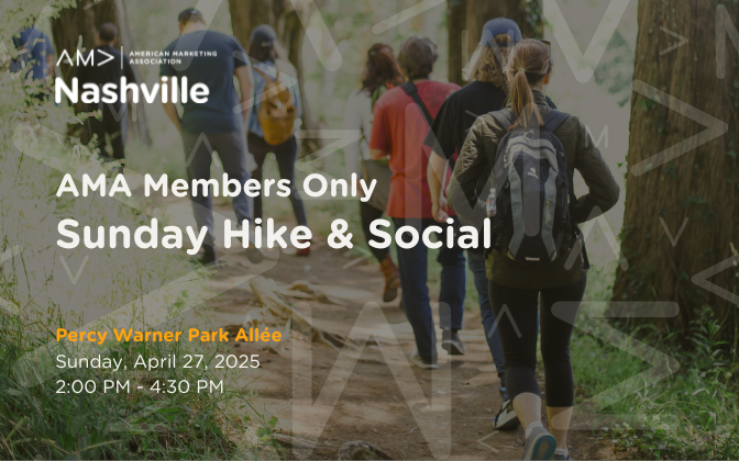 Take a break from the usual routine and join AMA Nashville members for a Sunday afternoon hike at Percy Warner Park. We’ll meet at the big stairs at Percy Warner Park Allée and explore the trails—offering a great opportunity to connect with peers in a casual, outdoor setting. After the hike, continue the conversation at Sam's Place, just a short drive away. Whether you’re looking to meet new people, share ideas, or simply enjoy time outside, this members-only event is a great way to unwind and catch up with the AMA community.