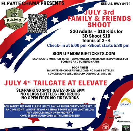 In consideration of being allowed to participate in any way in 2025 Archery Shoot events and activities, the undersigned acknowledges, appreciates, and agrees that: 1) The risk of injury from archery and other known and unknown events and activities and/or the use of the related buildings, structures, equipment, automobiles, firearms, weapons, ATV’s, boats, tree stands, roads, bodies of water, land and all other real and personal property whether owned by archery club or others is significant, including the potential for permanent paralysis and death, and while particular rules, equipment, and personal discipline may reduce this risk, the risk of serious injury does exist; and, 2) I acknowledge and agree that the use of archery equipment, firearms and other weapons by myself or others on club premises or otherwise are inherently dangerous and high risk activities whether such archery equipment, firearms or weapons are discharged by myself or others; and 3) I KNOWINGLY AND FREELY ASSUME ALL SUCH RISKS, both known and unknown, EVEN IF ARISING FROM THE NEGLIGENCE OF THE RELEASEES or others, and assume full responsibility for my participation; and, 4) I willingly agree to comply with the stated and customary terms and conditions for participation. If, however, I observe any unusual significant hazard during my presence or participation, I will remove myself from participation and bring such to the attention of the nearest official immediately; and, 5) I, for myself and on behalf of my heirs, assigns, personal representatives and next of kin, HEREBY RELEASE AND HOLD HARMLESS Elevate Chama, Anchored Hope and FAMS its officers, directors, officials, agents, employees, volunteers, members, guests, other participants, sponsoring agencies, sponsors, advertisers, and if applicable, owners and lessors of real property and personal property used to conduct the events and activities (“RELEASEES”), WITH RESPECT TO ANY AND ALL INJURY, DISABILITY, DEATH, or loss or damage to person or property, WHETHER ARISING FROM THE NEGLIGENCE OF THE RELEASEES OR OTHERWISE, TO THE FULLEST EXTENT PERMITTED BY LAW. I HAVE READ THIS RELEASE OF LIABILITY AND ASSUMPTION OF RISK AGREEMENT, FULLY UNDERSTAND ITS TERMS, UNDERSTAND THAT I HAVE GIVEN UP SUBSTANTIAL RIGHTS BY SIGNING IT, AND SIGN IT FREELY AND VOLUNTARILY WITHOUT ANY INDUCEMENT.