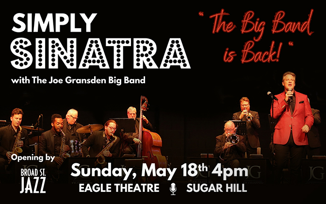 Sugar Hill’s Broad St. Jazz Band will open for Joe's band. This group has become an audience favorite throughout the year at the beautiful Eagle Theatre, playing an exciting range of jazz and swing selections.