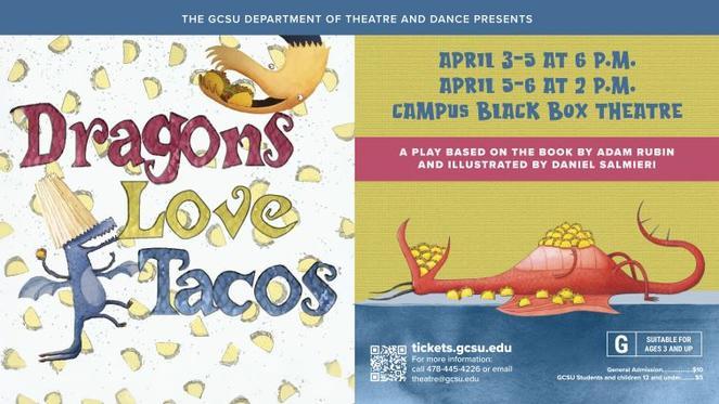 A Theatre for Young Audiences. Performance is based on the book by Adam Rubin and Illustrated by Daniel Salmieri. You know what dragons really love? Tacos of course! A boy and his dog are watching a TV show about dragons when they unexpectedly get caught up in the Dos and Don'ts' of what to serve to dragons to eat. Dragons love tacos, but if they accidentally eat spicy salsa...watch out!
