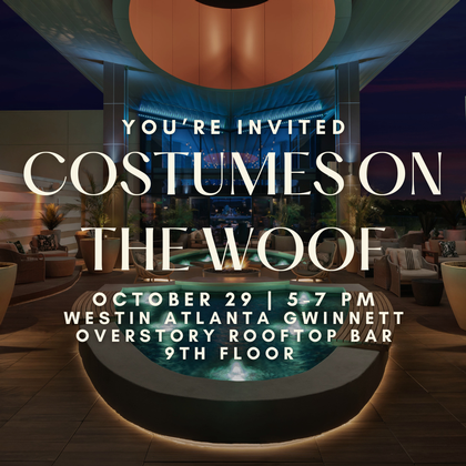 Join us at Overstory Rooftop Bar on October 29th from 5 - 7 PM for Costumes on the Woof! Bring your furry friend in their best Halloween costume and partake in a costume show expertly judged by a panel of local celebrities, including Stephen Ochs, founder and CEO of Fetch Park, CBS NFL sideline reporter Tiffany Blackmon, and former Bachelorette winner Josh Murray.