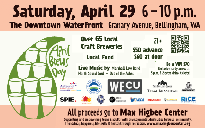 The 19th annual April Brews Day invites you to taste beers from over 60 Pacific Northwest craft breweries on Saturday, April 29th at the Downtown Waterfront at Granary Ave in Bellingham Washington. With 140+ regional beers on tap, April Brews Day is one of the Northwest's biggest and best craft brew festivals. Enjoy live music by, eats from one of a dozen delicious food vendors, festival games, and have a chance to vote for your favorite beer.