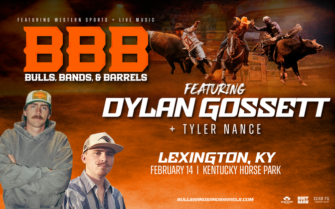 That's right folks, the BBB will be in Lexington, KY for ONE NIGHT ONLY on February 14, 2026 at the Alltech Arena at the Kentucky Horse Park! We have taken the rodeo world and turned it upside down with our new concept. We will have some of the rankest bulls and bull riders in the Southeast as well as some of the fastest equine to ever go around a 3 barrel pattern. On the concert side, following the bulls & barrels, Dylan Gossett and Tyler Nance will finish the night off with a bang! This will be the ONE event you don't want to miss!!