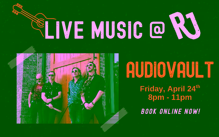 Experience the high-energy performance of AudioVault, a dynamic Atlanta-based band playing party rock hits from the 80s, 90s, and beyond! These guys Engage audiences with mega-hits that keep the crowd singing and dancing from the very moment the band takes the stage.