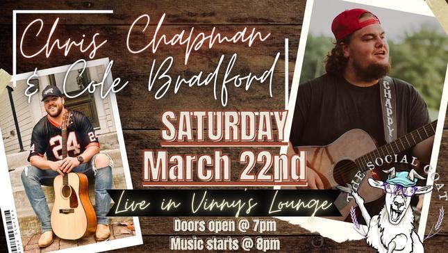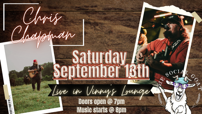 Get ready for an unforgettable night of music as Chris Chapman, straight from Nashville’s vibrant music scene, takes the stage at Vinny’s Lounge! Known for his soulful voice, heartfelt songwriting, and captivating stage presence, Chris delivers a performance you won’t want to miss.