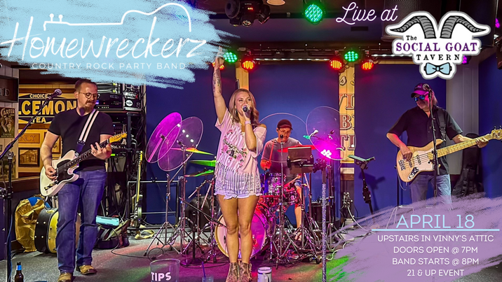 Grab your crew, grab a drink, and come tear it up with the Homewreckerz – it's gonna be loud, live, and unforgettable!