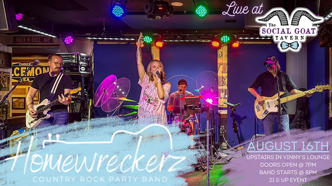 Grab your crew, grab a drink, and come tear it up with the Homewreckerz – it's gonna be loud, live, and unforgettable!