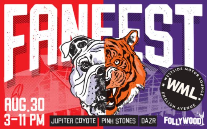 Westside Motor Lounge and Follywood Productions is throwing a college football kickoff party not to be missed. Calling on all Clemson & UGA alumni and fans to come together the day before the Tigers take on the Bulldogs in the Mercedes-Benz Stadium to celebrate the kick-off to the college football season. Live music from The Pink Stones from Athens, Dazr from Clemson and Jupiter Coyote. Special presentations from UGA'a Classic City Collective and Clemson's 110 Society. Vendors selling merch, grill stations, cocktail bars, cold beer and all around good times. Get your crew together and come represent.